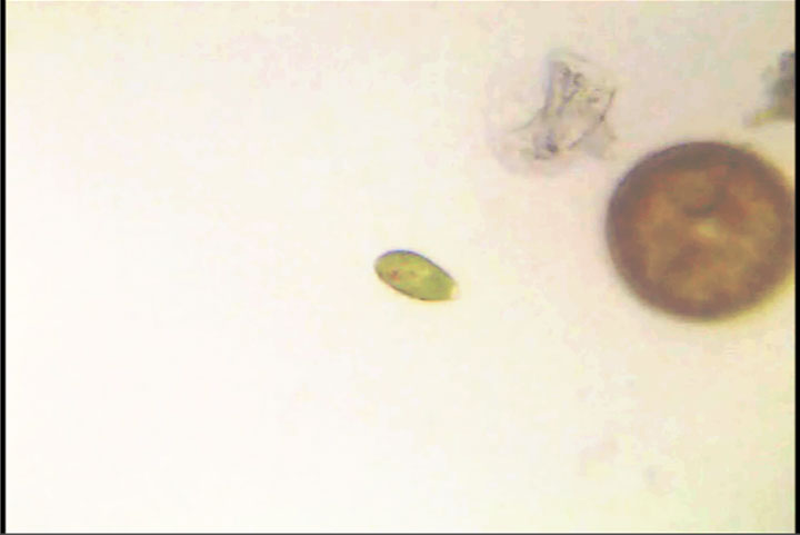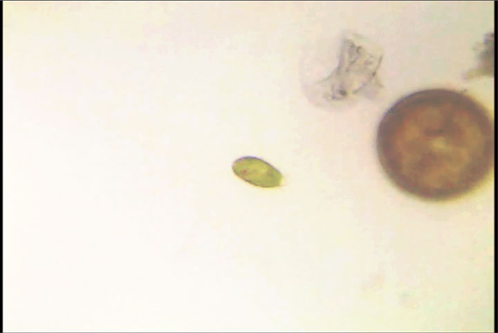 Images cropped from January 5, 2009, Salt Water Phytoplankton Sample #27. I welcome others to download the original compressed avi, and feel free to try their own editing tools to bring this organism out into the sharpest focus and best light possible. These are some of the sample shots from the video (adjusted for brightness and contrast using Adobe Premiere Pro).