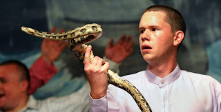 [Scholars doubt the authenticity of the above verses since they are not found in the earliest known manuscripts of Mark. Indeed, three different added endings to Mark have been found in later manuscripts, so perhaps early Christians were trying to make up for the lack of a proper ending in the original. But none of these textual questions discourage serpent-handling Christians who believe that their faith and practice demonstrates the authenticity of Mark 16:15-20 and the miraculous foundations of their particular faith and church.]