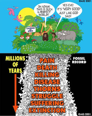 But if the Second Law was in effect, and the animals and first couple digested their vegetarian dinners might they not have expelled gas, the product of such decay? Or defecated? And if there were helpful E. Coli bacteria in their guts (half of fecal matter is the waste produced by E. Coli including dead E. Coli) might not their fecal matter have had an odor? What about the bacteria living on the bodies of every living thing, such as in the armpits of Adam and Eve, and the waste produced by those bacteria? Did it also have an odor? What about the bacteria in their mouths and the waste products it produced, along with possible odors? Morning breath? Did God feel the least bit obliged to give Adam and Eve the recipe for soap? How about mouthwash? In other words, wouldnʼt Adam and Eve have felt just a LITTLE embarrassed (perhaps even ‘ashamed’) of discovering such odors for the first time, even before they discovered they were ‘naked?’ So if one insists that the original creation was so perfect there was no death, nor any signs of decay, one might retort with, “No decay my rear end!” Or should I say, “Adamʼs rear end?” Or, as Adam once put it, “Eve, pick some of those soft leaves next time, Iʼm getting chafed!” There was also pain in paradise. How do I know? It says in Genesis that God ‘cursed woman’ by ‘increasing or multiplying’ her pain in childbirth, and you canʼt ‘increase or multiply’ what isnʼt already there.